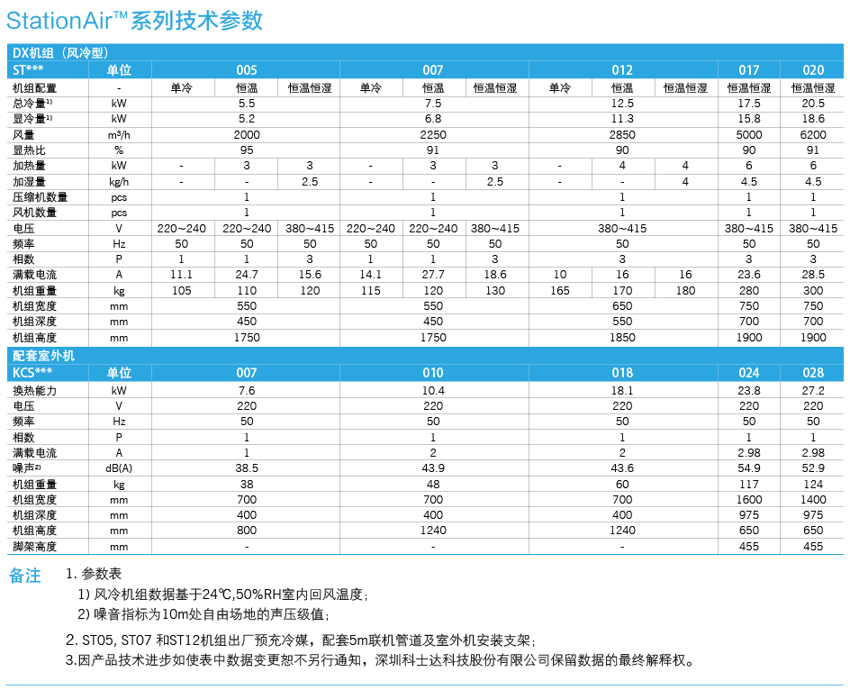 产品***性科士达StationAirTM系列精密空调机组配置恒温恒湿功能,采用大风量、高显热比设计,满足专业机房的需求;365天×24小时全天候运行设计,精密匹配的高效制冷系统,配以大面积蒸发器,保证机组全天候***优节能运行。